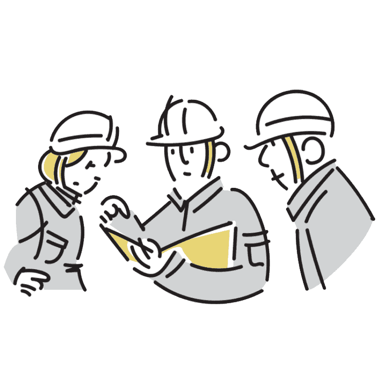 現場での作業においても、適切な保護具の着用や危険個所の確認など、細やかな注意を払って作業を行っています。また、定期的に安全教育を実施し、安全に関する情報の共有を行うことで、より安全な職場づくりを目指しています。